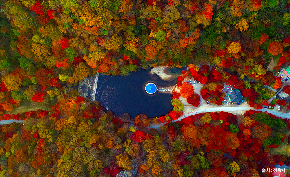 - 늦가을(11월 초): 중·저지대 단풍, 단풍잎 낙엽으로 절경