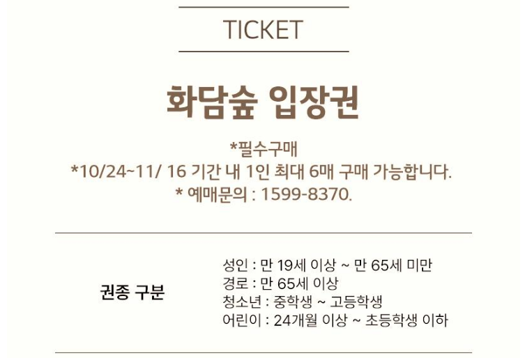 - 입장료(가을 기준): 성인 11,000원 / 경로·청소년 9,000원 / 어린이 7,000원. 유아(24개월 미만) 무료, 단풍 시즌엔 대부분의 상시 할인 미운영.