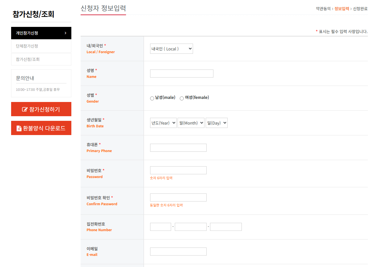 - 참가자 정보 정확히 기입 (이름, 생년월일 등)