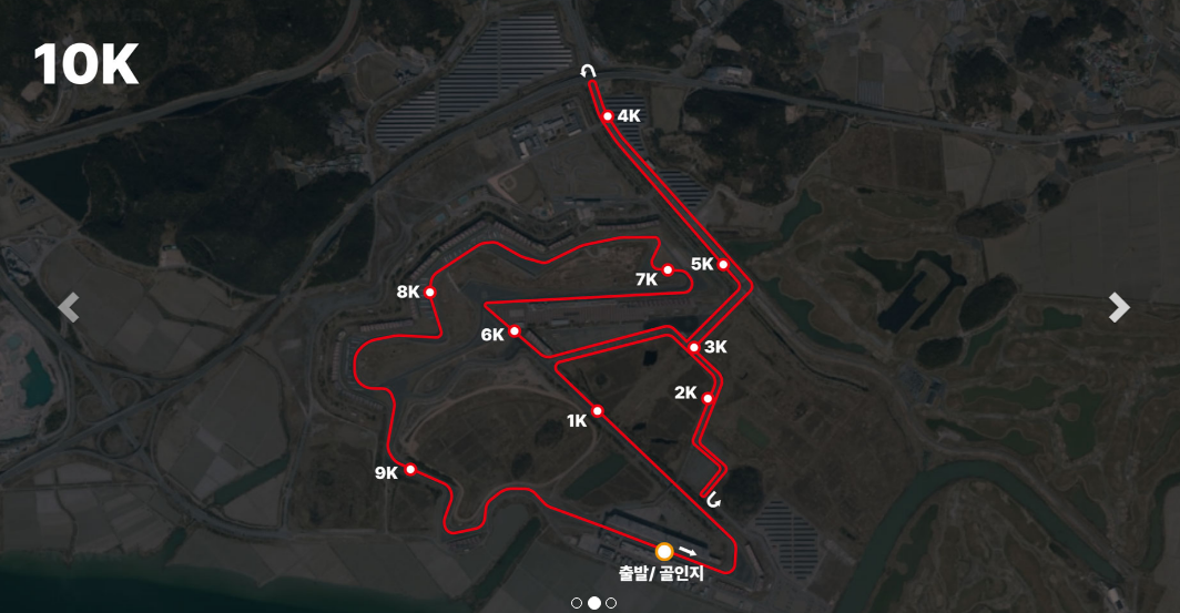 - 서킷 구간 포함: 경주장 트랙 위를 달리는 구간이 포함되며, 포장 상태가 양호하고 경로 표식이 명확할 가능성이 높습니다.