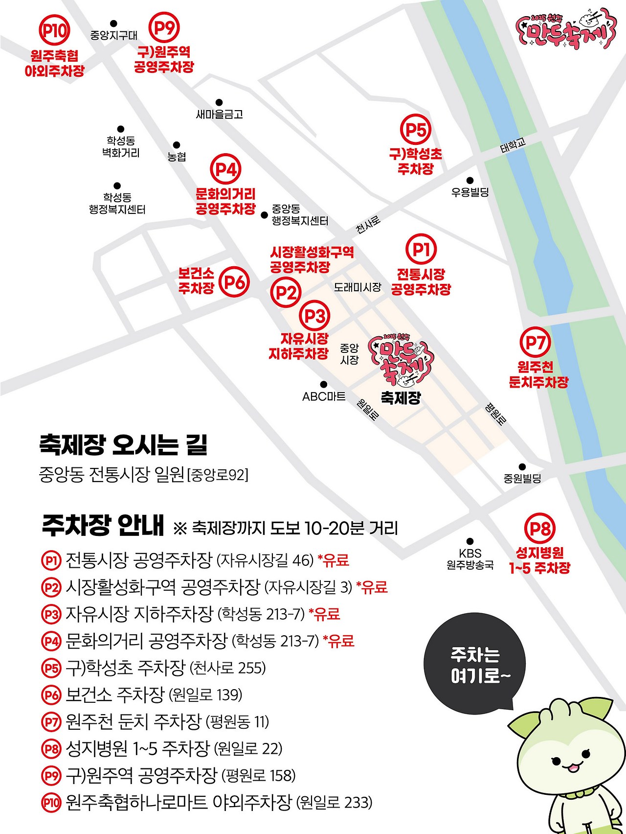 - 장소: 원주 중앙동 전통시장 일원(중앙시장·자유시장·문화의 거리·원일로 일대)—원도심 전역으로 확대 운영