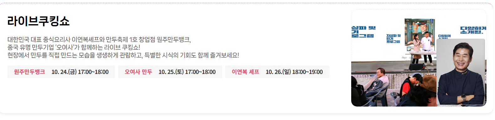 - 10/24(금) 17:00~18:00 — 원주만두뱅크 라이브 쿠킹쇼