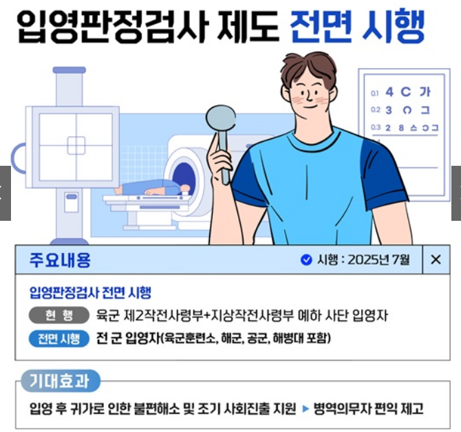 🎯 1. 입영판정검사 제도 전면 시행 (시행시기: 2025년 7월)