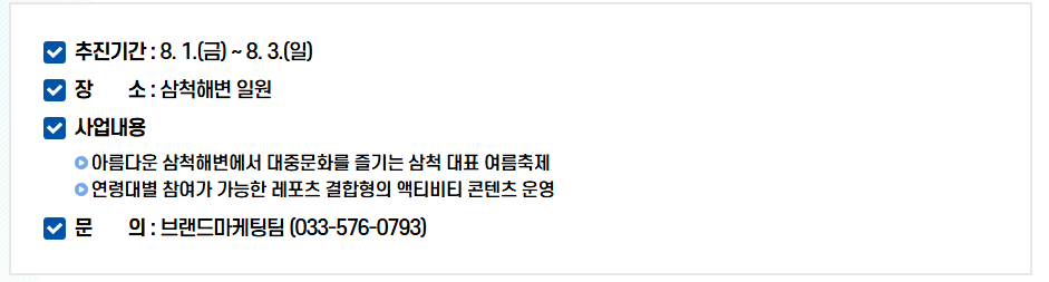 - 삼척 대표 여름 문화 축제로서의 인지도 굳히기