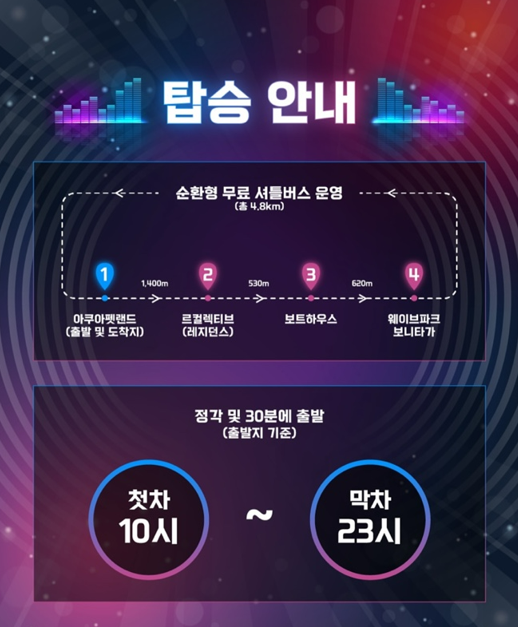 - 아쿠아펫랜드 → 웨이브파크 구간 양방향 운영