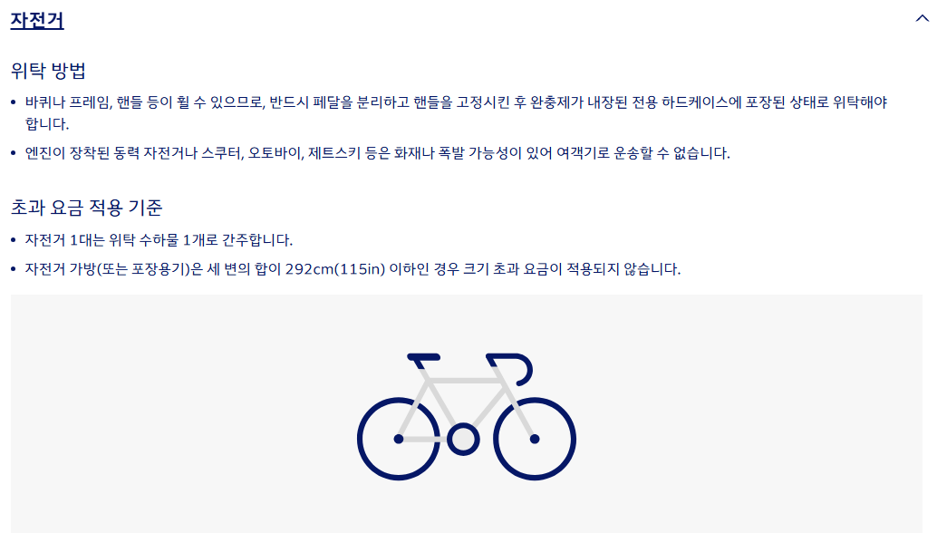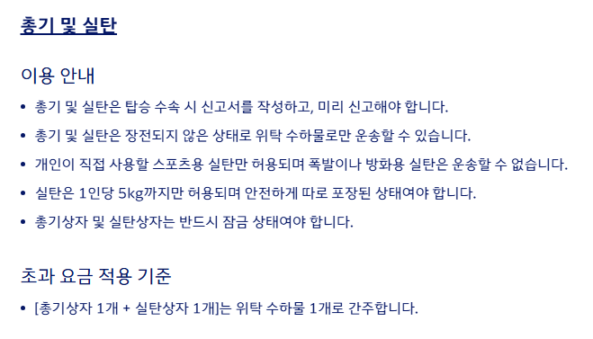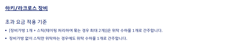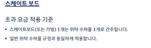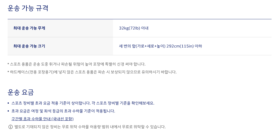 - 무게 초과: 기본 허용 무게보다 1kg라도 초과 시 요금 발생