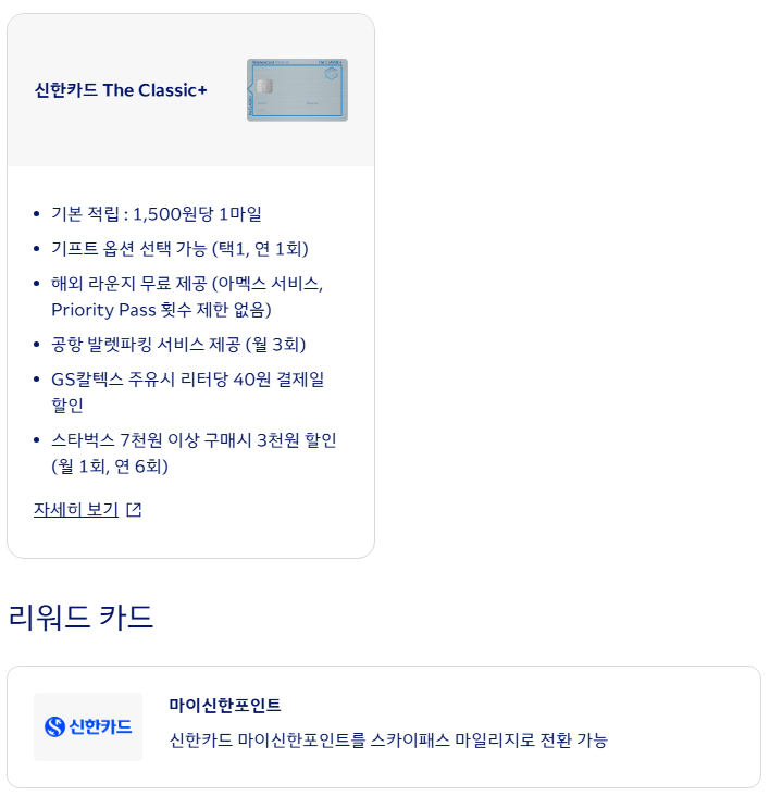 → 비즈니스 항공권 시세 약 350만 원 → 마일 가치 1마일당 약 7.7원