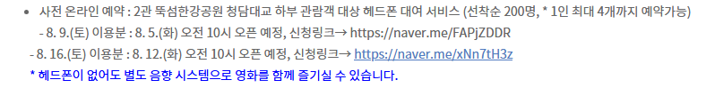 - 헤드폰 없이도 상영 관람은 가능하니 미리 준비 여부를 확인하세요.