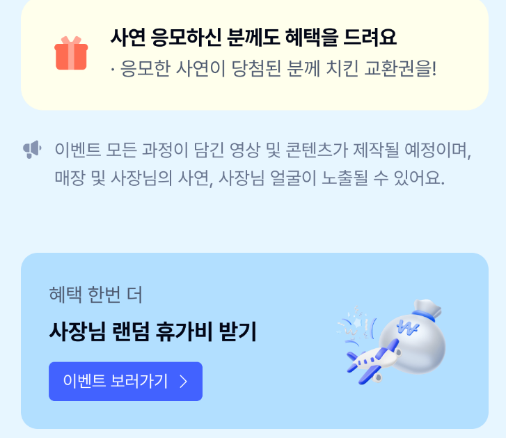 - ‘사장님 유급휴가’/‘여행지원금’ 이벤트 선택 후 응모하기