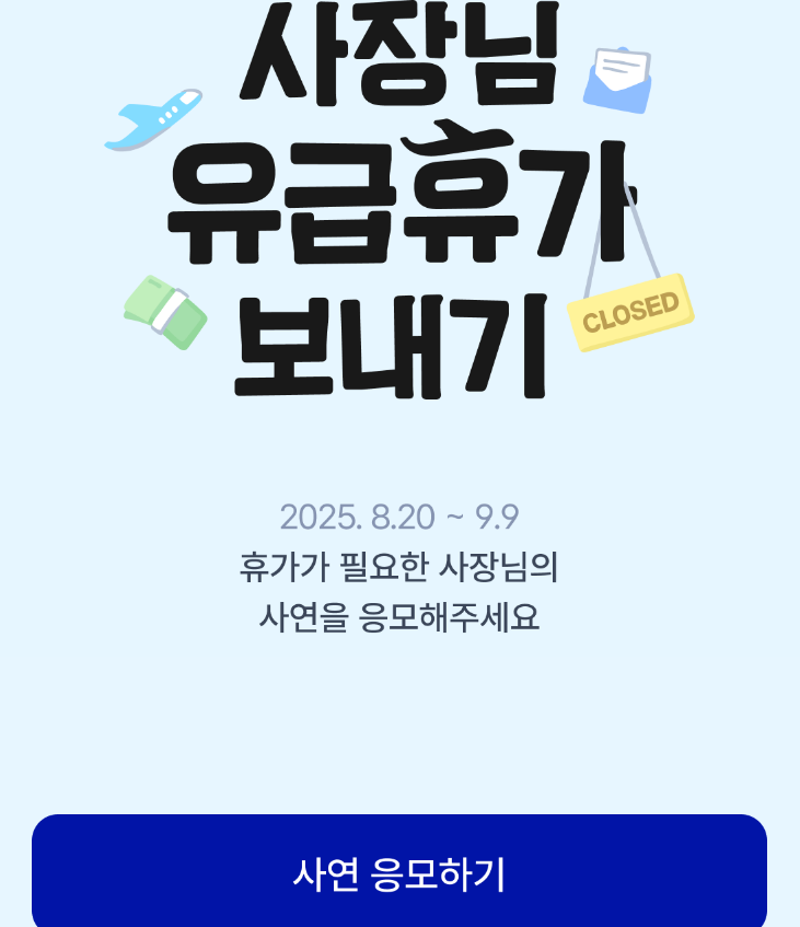 - 왜 지금 휴가가 필요한지, 일 매출·운영상황, 휴식이 가져올 변화를 구체적·진솔하게 적으면 가점이 될 수 있습니다(사연형 캠페인 공통 팁).