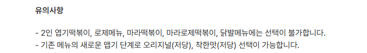 2. 저당 엽기떡볶이 적용 메뉴