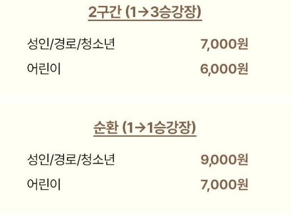 - 순환(1→1): 성인·경로·청소년 9,000원 / 어린이 7,000원