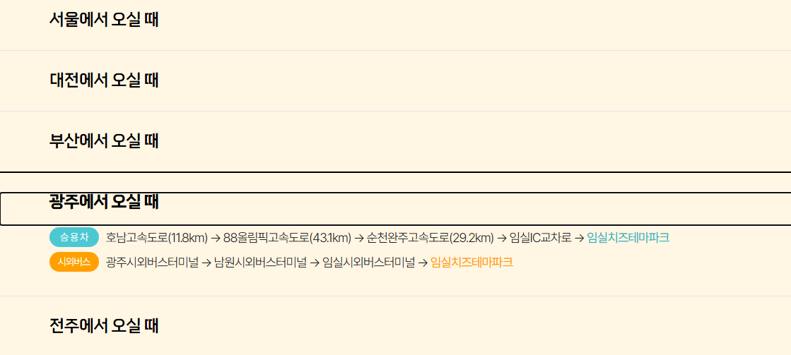 - 셔틀버스 전용 주차장: 성수면 도인리 894-19 (전주 셔틀/단체버스 전용)
