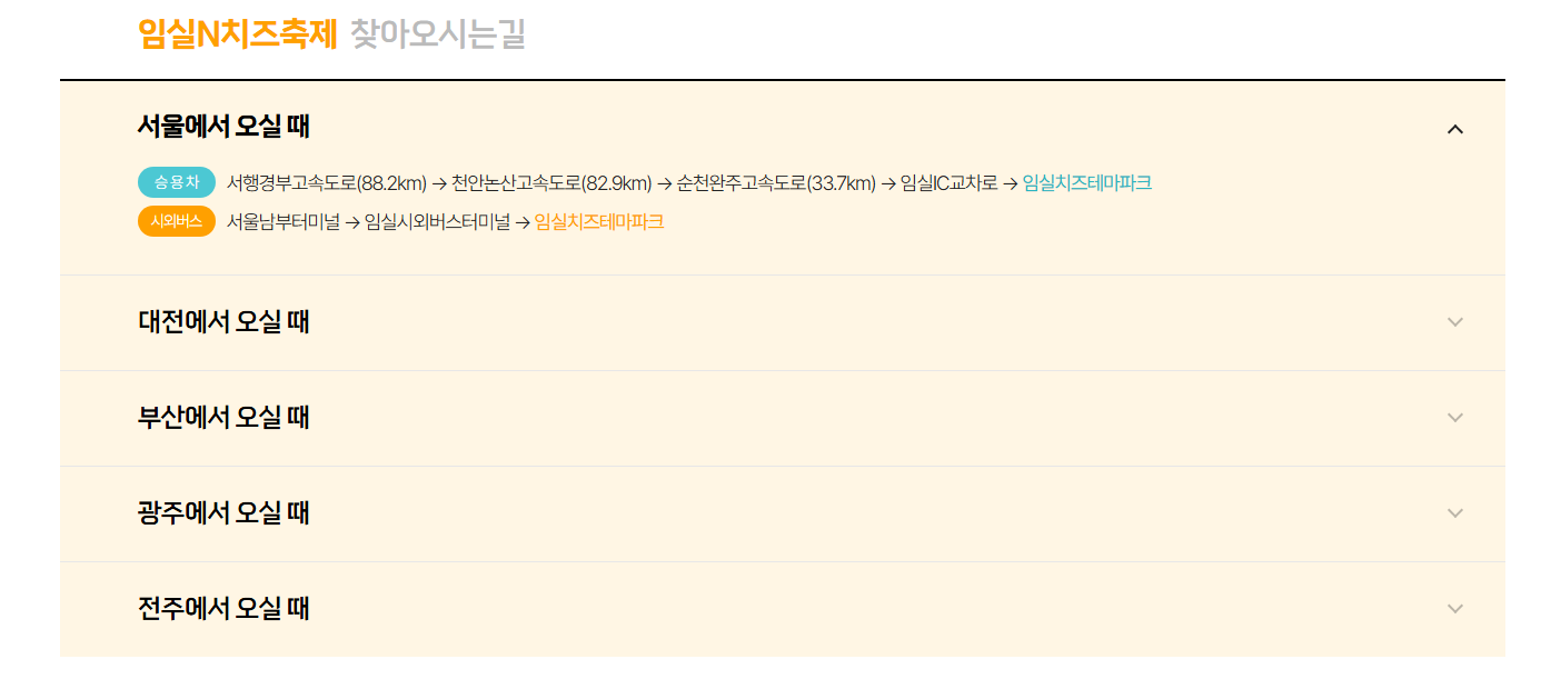 - 장소: 임실치즈테마파크, 임실치즈마을, 임실읍 일원(전북특별자치도 임실군 성수면 도인2길 50).