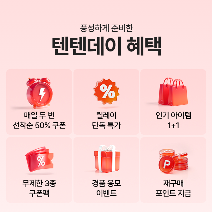 - 10/17(금) ~ 11/2(일): APP 전용 재구매 혜택 이벤트 — 텐텐데이 기간 구매 고객 대상 APP 참여형 추가 혜택.