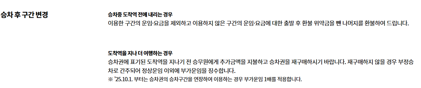 - 승차권 없이 기차에 탑승한 경우에는 무임승차로 간주, 현장에서 요금 외에 가산금 최대 30% 부과