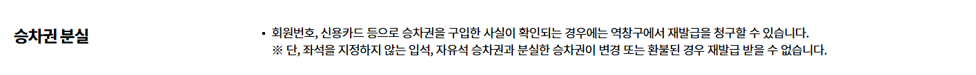 - 승차권 실물 분실 시 환불 제한