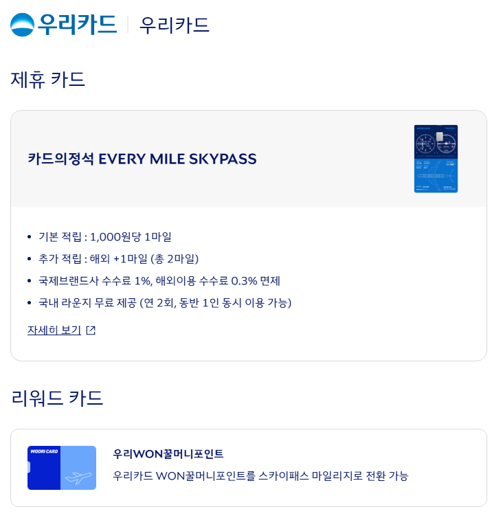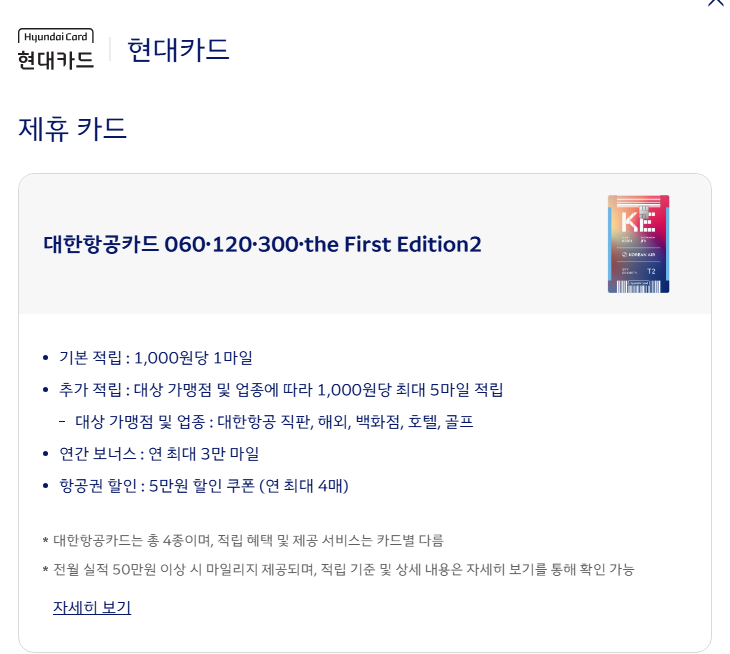 | 제휴 카드사 | KB, 신한, 롯데 등 다양 | 하나카드 중심 |