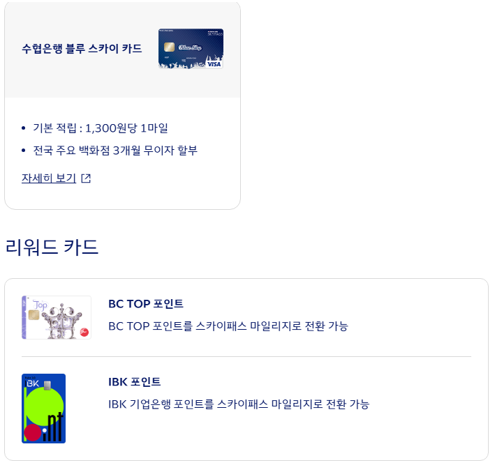 - 항공 마일리지 → 신세계포인트, 롯데포인트 등 전환 가능