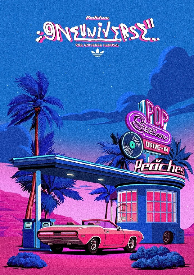- 무대·포토 스팟·브랜딩 요소 전반이 Drive-in/Pop Station 아트워크로 통일. 페스티벌의 공간 정체성을 강화합니다. 현장 연출은 해마다 진화해 왔으며, 2025년 역시 시그니처 네온 색감과 차량/주유소 모티프를 활용할 것으로 보입니다.