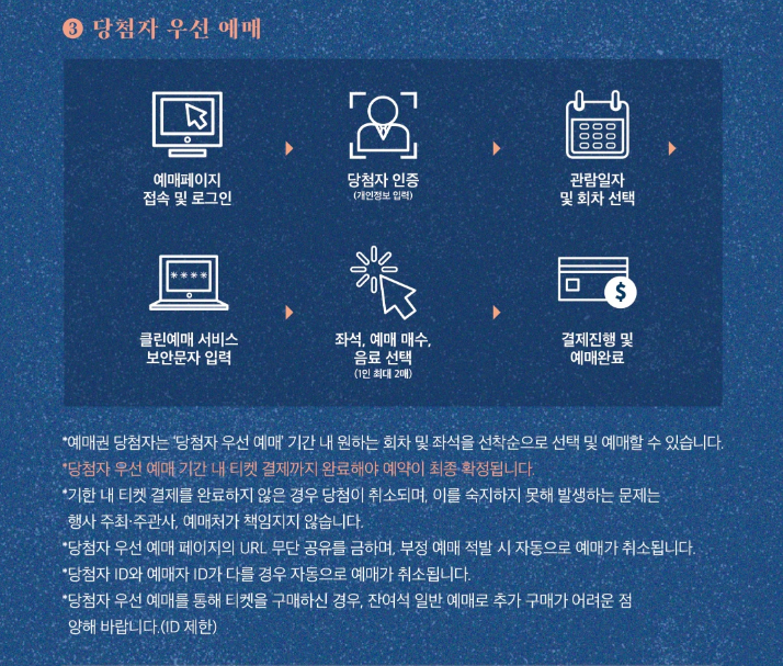 - 매수 제한: 당첨자 1인당 최대 2매 예매.