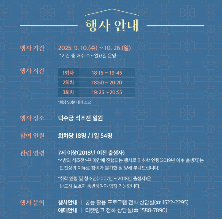 덕수궁 밤의 석조전 야간개장—일정, 예매방법, 시간표, 동선, 금액, 프로그램 정보