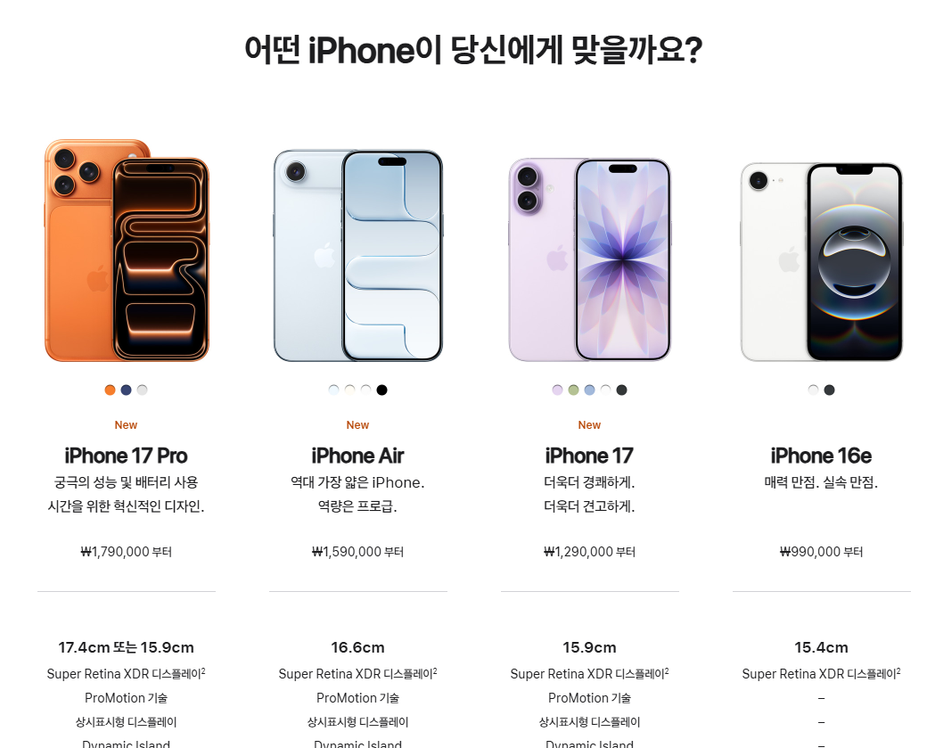 A. 애플은 공식 자료에서 “세 개 모두 48MP Fusion, 포켓 속 8개 렌즈”라고 정의하며 고해상·멀티 초점거리 운용을 전면에 내세웠습니다. 망원 48MP(4× 100mm)와 초광각 48MP가 전작 대비 실질 체감 포인트입니다.